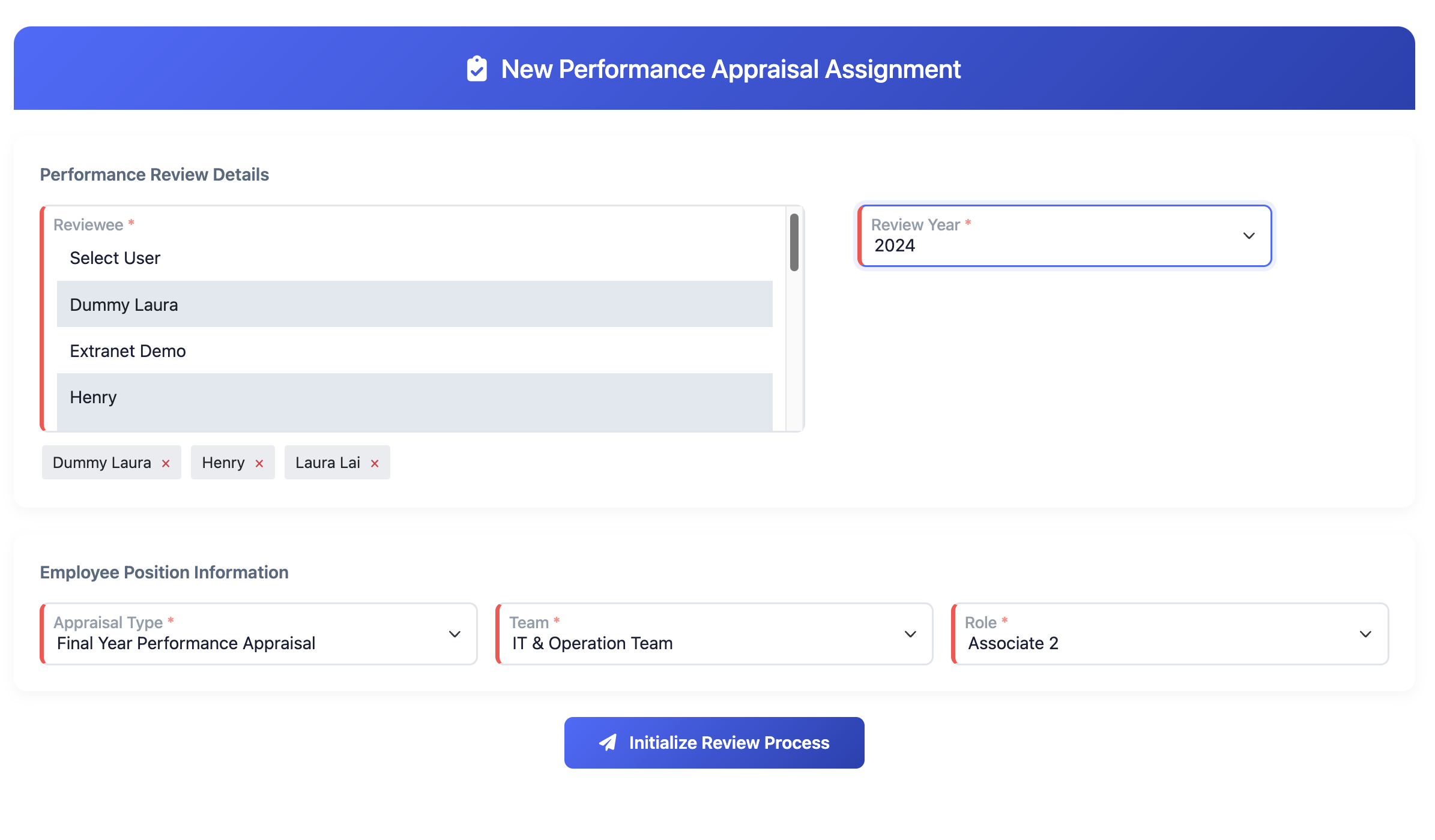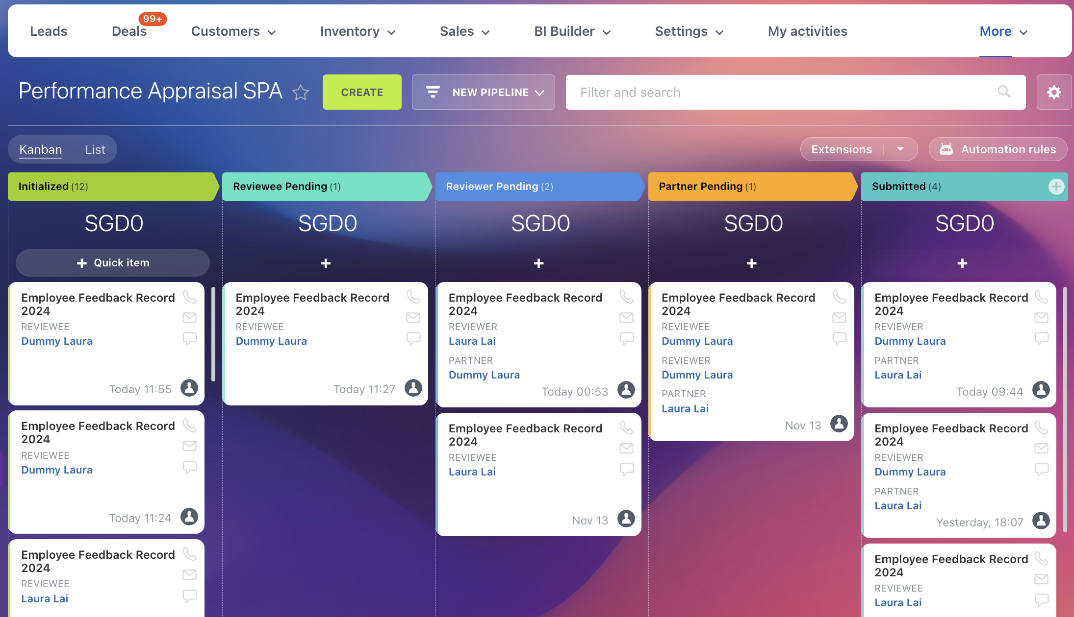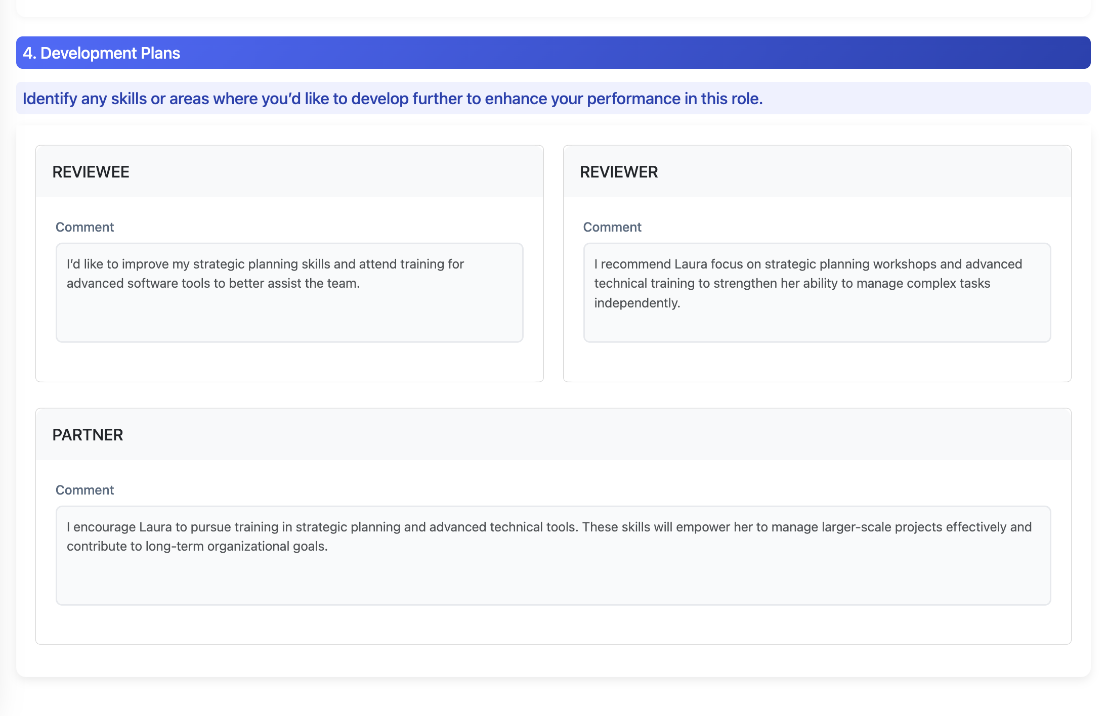 - PDF performance report is generated, shared with all parties and kept in system forever.